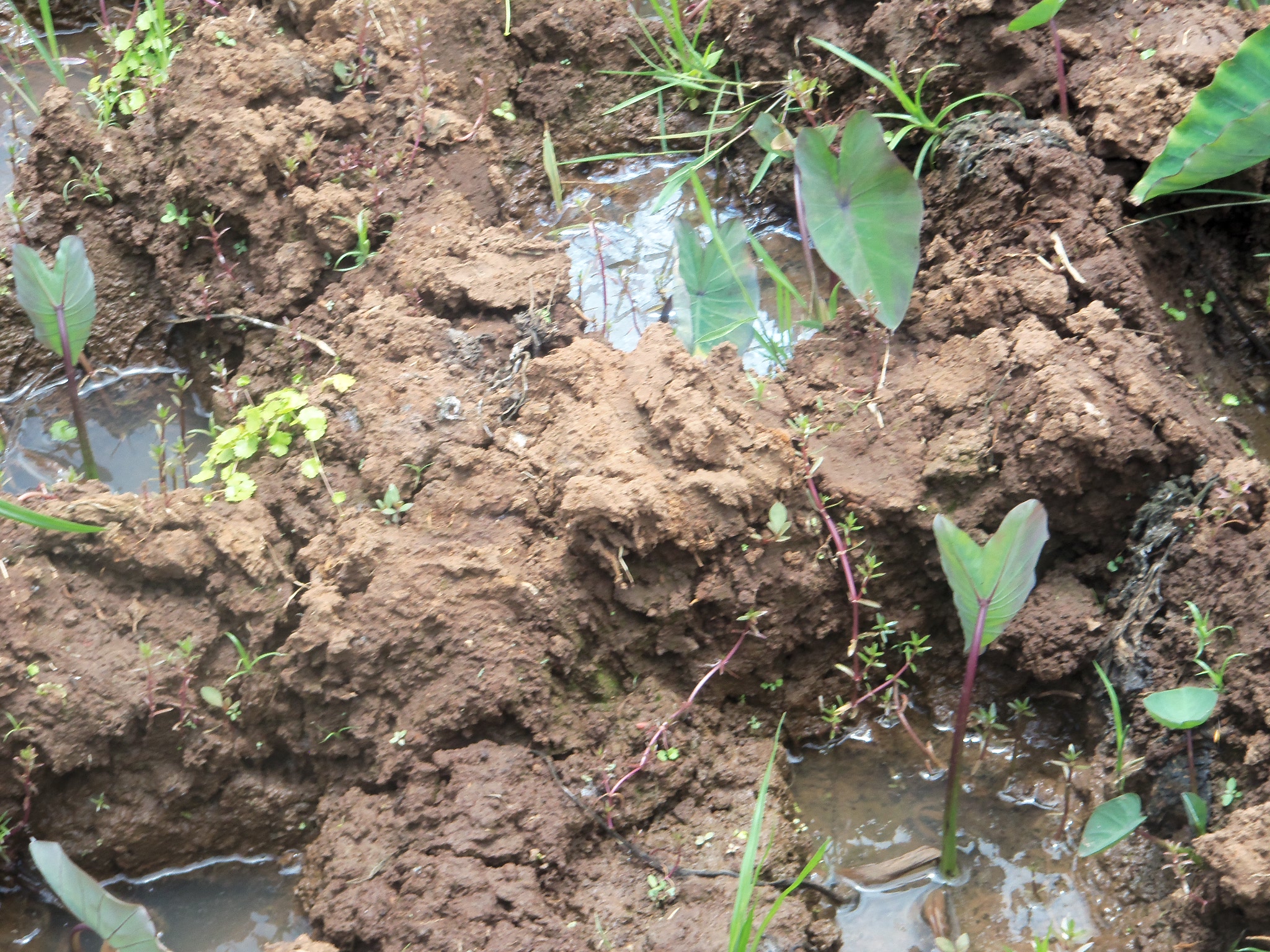 She has been in the business of farming arrowroots for more than ten years. She leads us down to the farm with wet clay soil sandwitched by streams of muddy water.