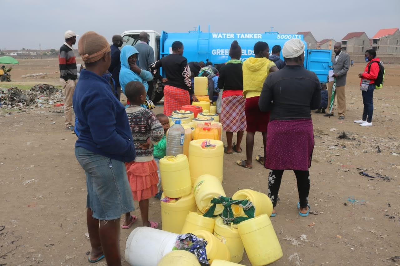 Big5 Library distributing water in Kayole Soweto slum .Photo-courtesy-Big5