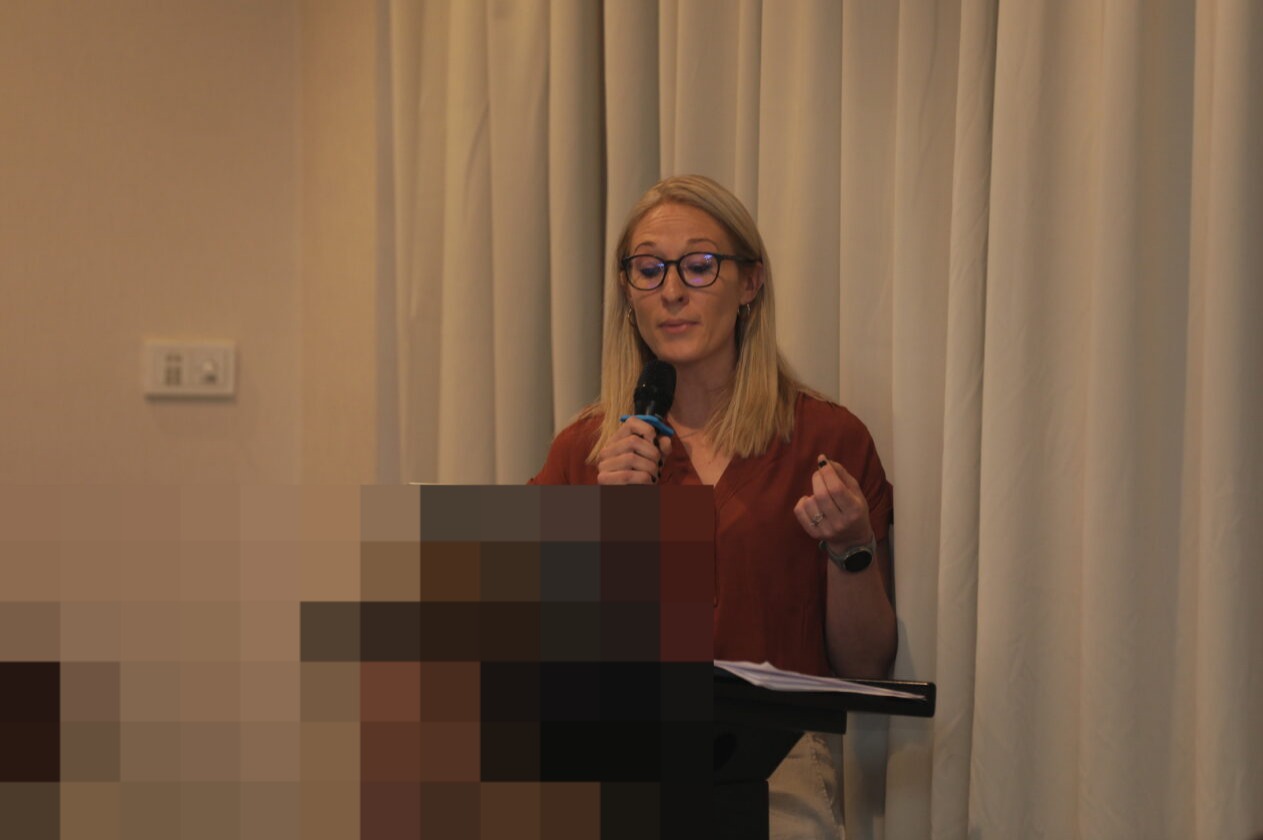 Amy G Thorp, Senior Adaptation & Resilience Advisor at Power Shift Africa, makes a presentation during the launch of the Adapt2Live campaign in Nairobi on September 12, 2023. The campaign is calling for global reinforcement in adaptation and resilience measures for Africa.