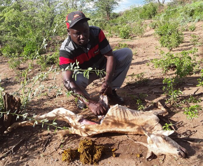 Bariongo County, Kenya: As the mouth shakes uncontrollably and an attempt to chew sends jaws sliding from side to side, the goat stands still, vomiting a thin dark green fluid. All signs that the end is near. Rispah Enenganai, the owner, watches helplessly. She has seen these signs too many times.