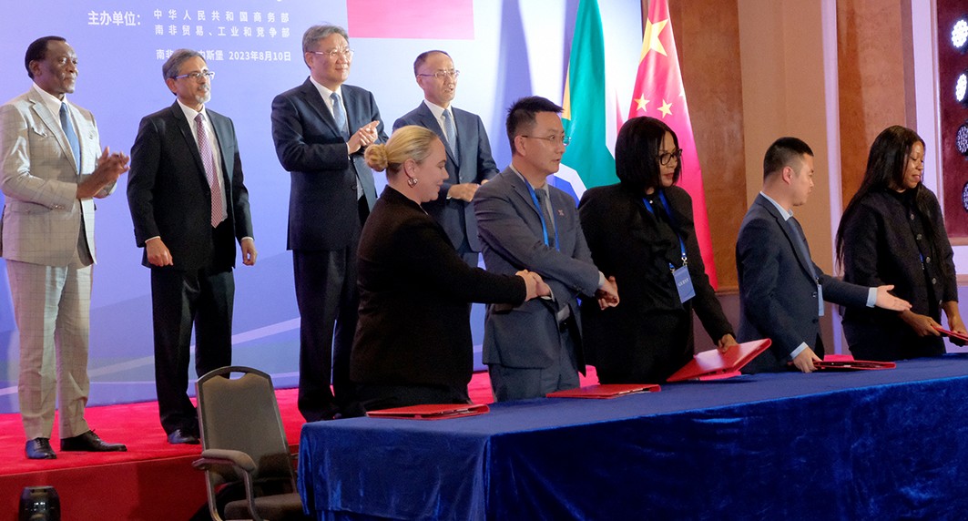 Present at the signing event ceremony were H.E. Chen Xiaodong, Chinese Ambassador to South Africa, and Mr. Stavros Nicolaou, Member of SA BRICS Business Council, who also addressed the event. The JETC talks included the two Ambassadors, Commissioner Edward Kieswetter of SARS and Ayabonga Cawe of ITAC, Deputy Ministers Gina and Majola, and a senior Chinese delegation.