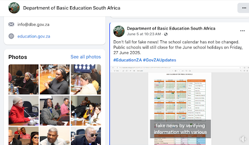 The Department of Basic Education in South Africa has refuted that the school calendar has changed. Through their Facebook page, the Department wrote that Don’t fall for fake news! The school calendar has not been changed. Public schools will still close for the June school holidays on Friday, 27 June 2025”.