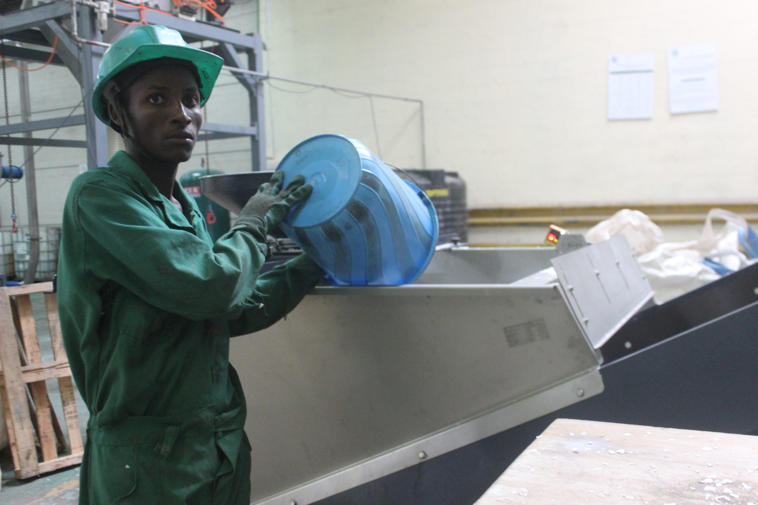 He further explains that “once the materials are delivered to the factory, they are first sorted based on color codes and other criteria then crushed before undergoing a rigorous washing process to remove oils and glues. This, in turn, produces palates or raw materials that we sell to companies’ which manufactures such plastic products as bottles, chairs, crates, buckets, basins, and bins.