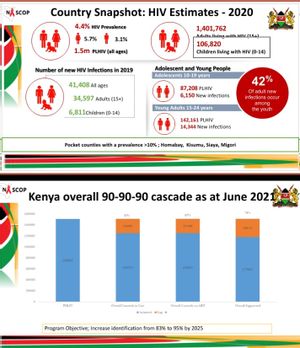 As of September 2021, Kenya has four nationally approved HIV self-testing kits–Ora Quick, INSTI, Sure Check, and Atomo. According to NASCOP Kenya, a country snapshot, adults living with HIV age fifteen plus are 1, 401,762 while the number of children living with HIV is 106,820. HIV prevalence in the country is at 4.4.% percent, of 1.5 Million people among people of all ages. Moreover, 42% percent of new infections occur among the youth.