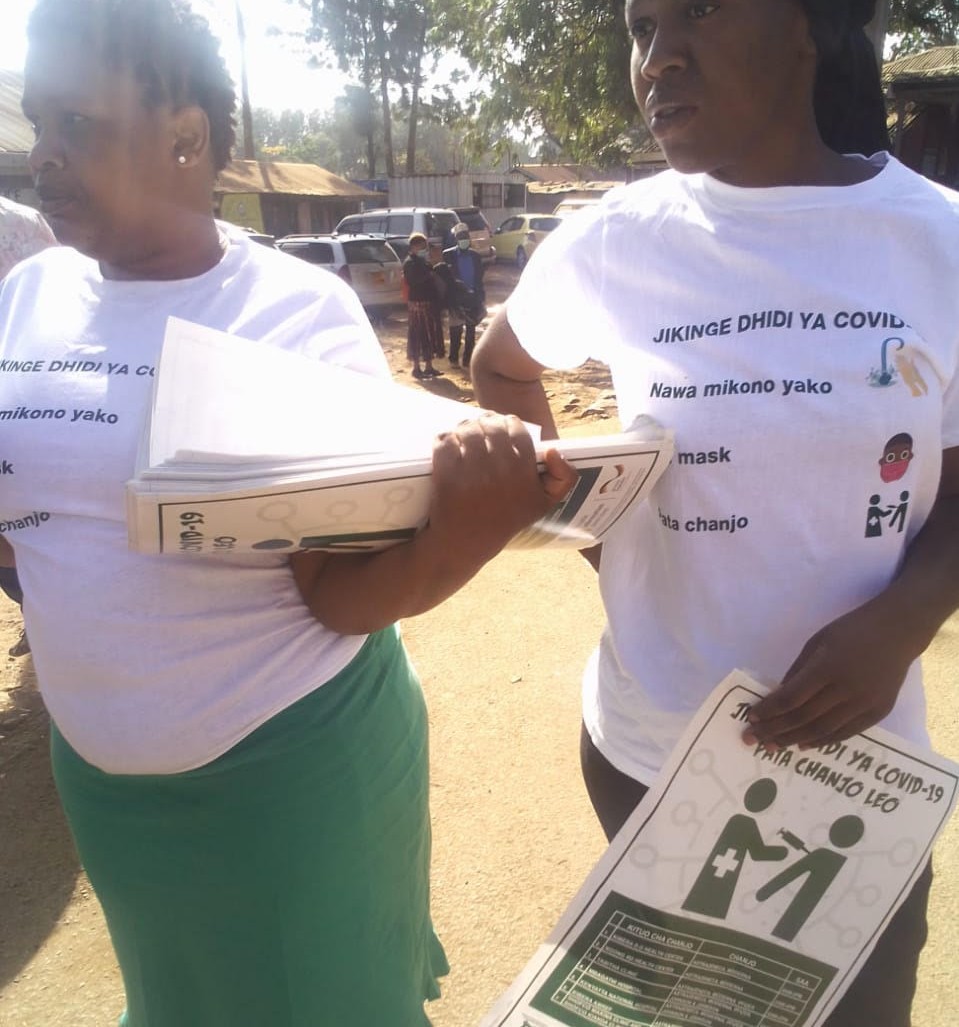 “Information credibility was a challenge, we wanted to come up with reliable information to the residents in Kibera, we printed T-shirts labeled Jikinge dhidi ya COVID 19, Nawa mikono yako, Vaa Mask, Pata chanjo –(protect yourself from Covid 19, Wash your hands, Put on your mask and get vaccinated)” said Janak.