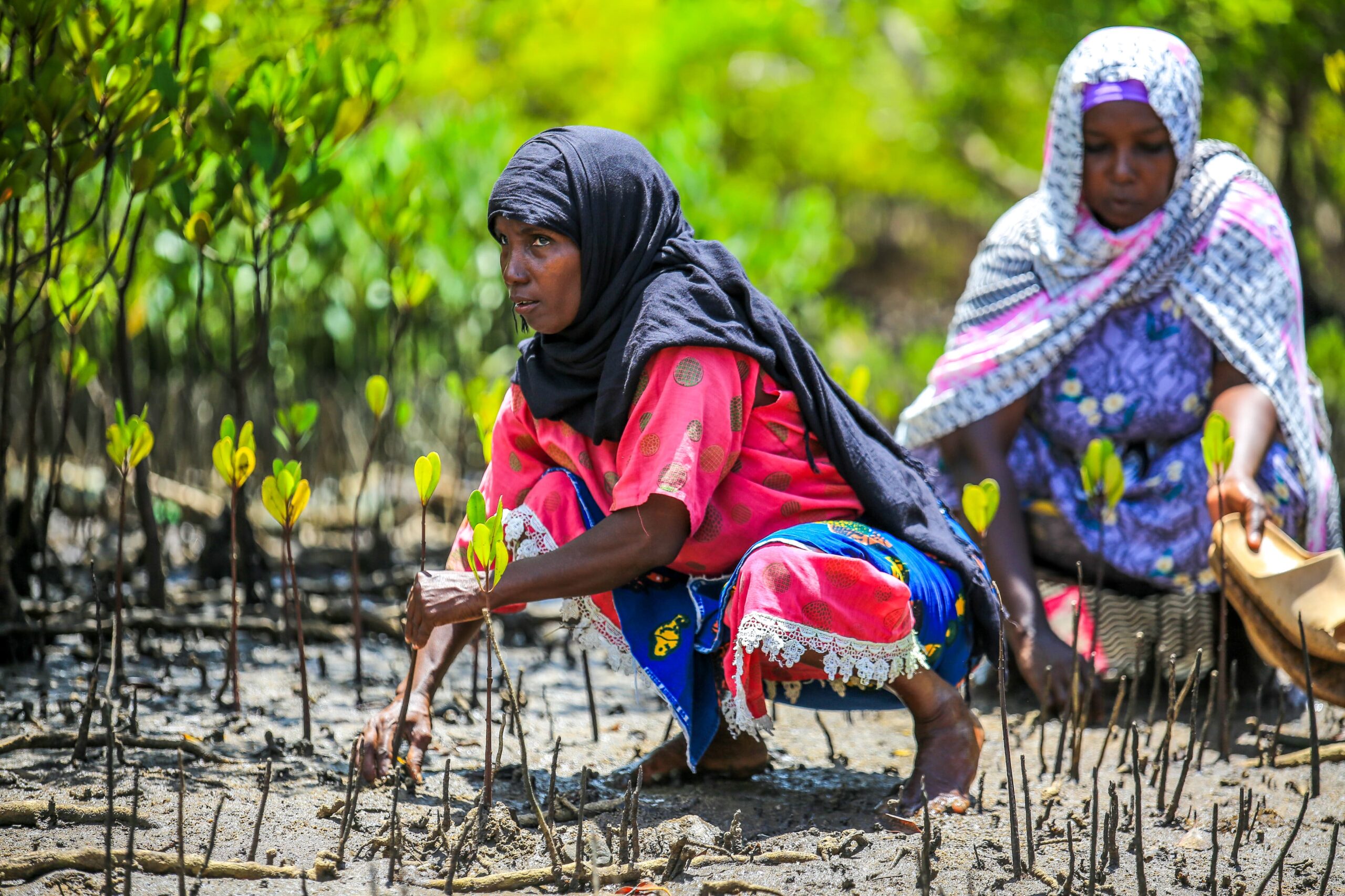 Mombasa, Kenya: Seated under the native big tree among thirty five women is Mwakajefa Mwavune is one of the women here who is passionate of reclaiming the degraded land along the Majoreni swamp along the Indian Ocean in Shimoni, Kwale county on the Kenyan coast.
