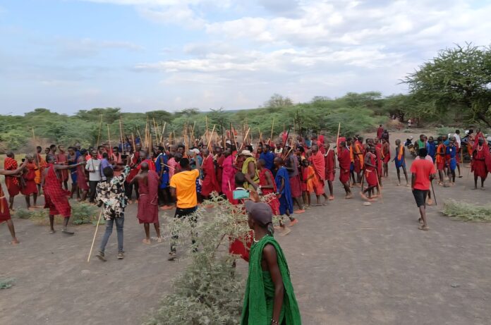 members of the Olkeri Group Ranch in Magadi, Kajiado West sub-county perform traditional Maasai songs and dancers to celebrate their shared heritage