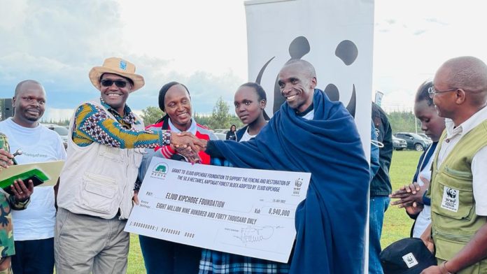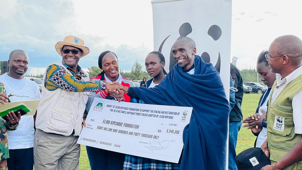Since Kaptagat Forest is a unique ecosystem where people, nature, and the economy interconnect its conservation remains critical, WWF-Kenya which is one of the leading conservation organizations in the country, through the UK-Pact and Trillion trees and WWF-UK donated Kshs 8,940,000 million to the Eliud Kipchoge Foundation to facilitate the fencing as well as restoration of the adopted 50.8 hectares.