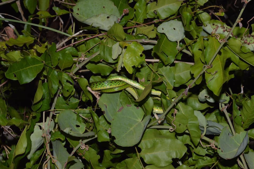 Green Snake (Philothamnus punctatus) is non venomous and harmless.