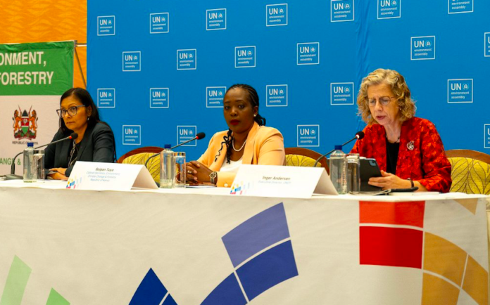 From Left to righ Radhika Ochalik, Director of the Governance Affairs Office at the UNEP, Soipan Tuya, Kenya’s CS) for Environment, Climate Change and Forestry and Inger Andersen, UNEP Executive Director/ UN