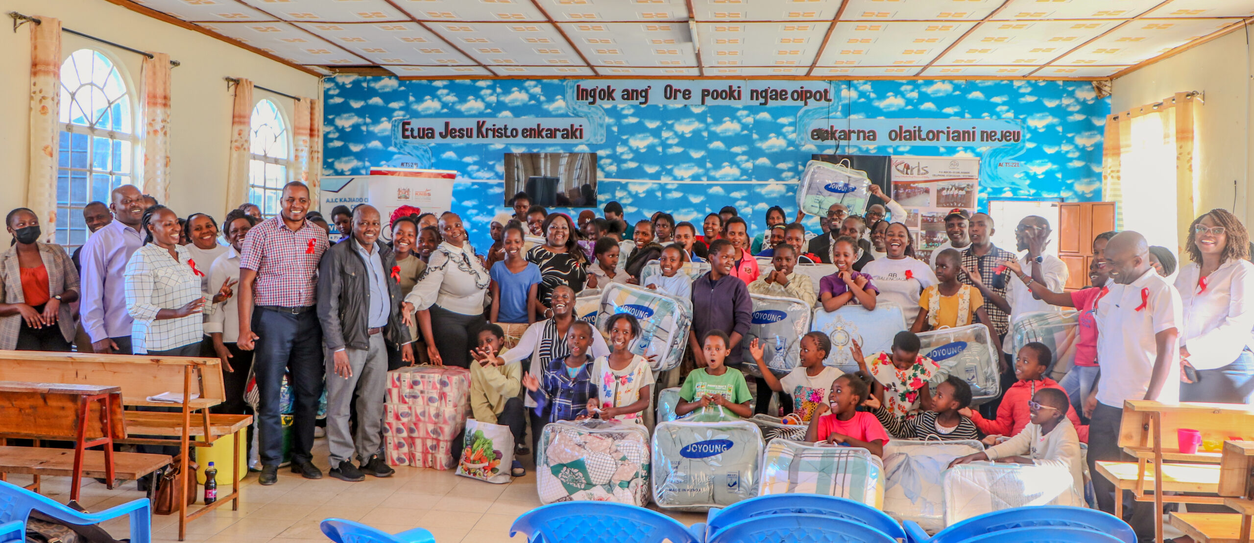 AIC Childcare Centre in Kajiado receiving donations from KNBS during World AIDS Day celebrations at the Centre-Photo by KNBS.