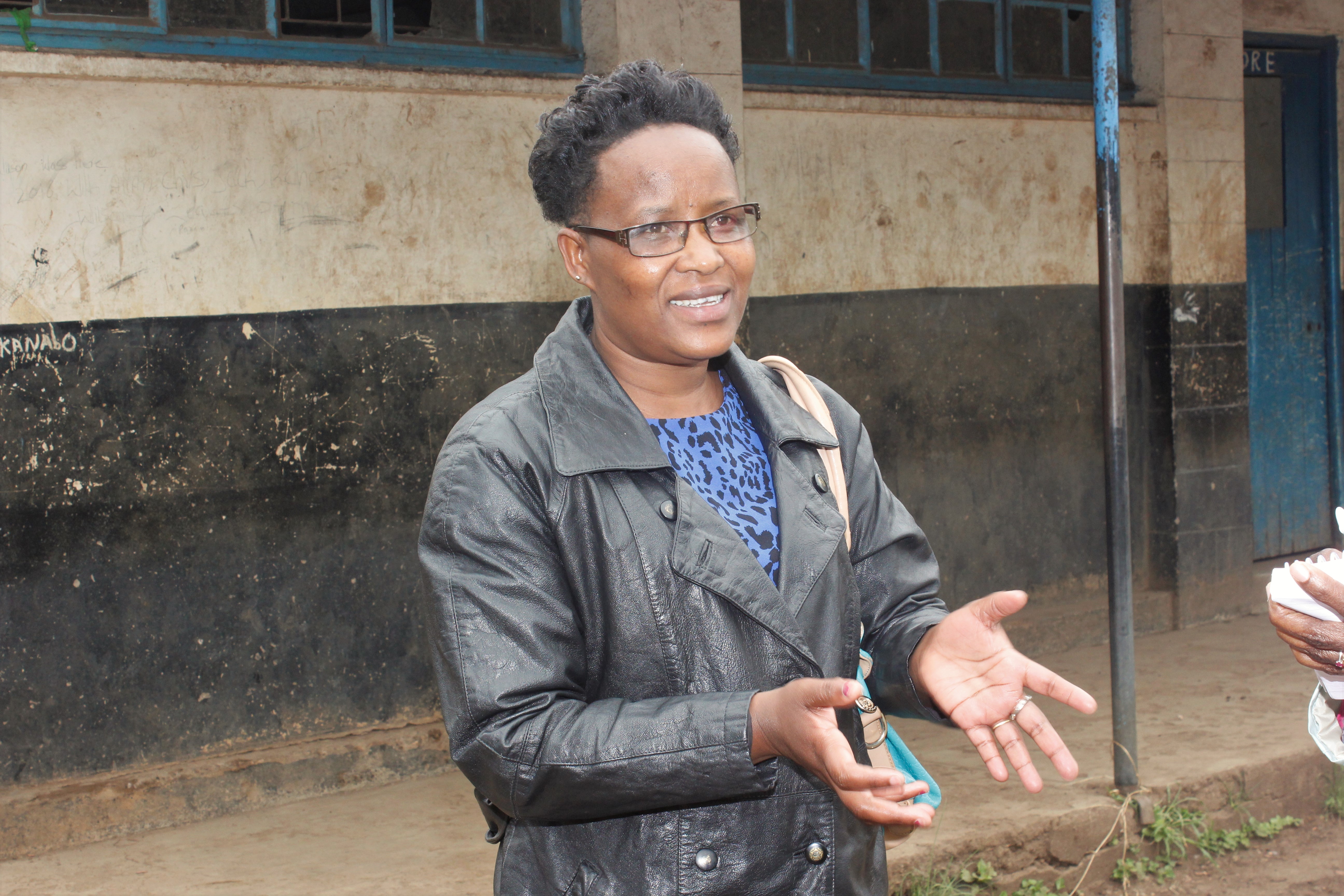 Holding her phone and a handbag tacked in her arms, dressed in a black leather jacket, a smiley Elizabeth Gichuki is conversant with every corner of the school.