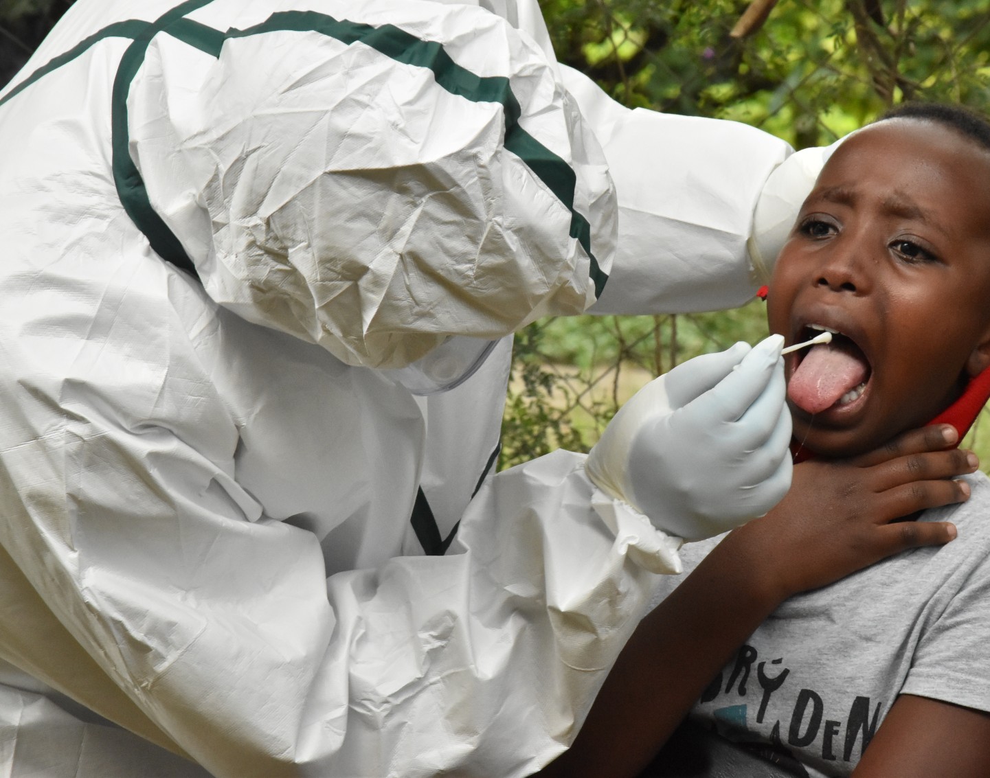 A Covid-19 mouth swab being collected from a child in Nairobi/ Samson Wire.